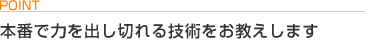 せっかく素敵な印象も、声がこもっている事や発音が聞き取りにくい事によって、相手に伝わらず、想いが半減してしまってはとてももったいありません。特に受験や就職試験などの際は、発音一つとっても判断の対象になりかねません。当教室では、正しい発生法も指導しておりますので、歌う事を楽しみながら、自然と正しい発音が身に付きます。また人前で歌う事によって、大事な場面でもあがらない度胸もつきます。